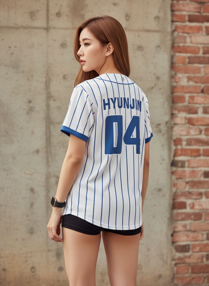 เสื้อเบสบอล SKZ ลายทาง HYUNJIN 04
